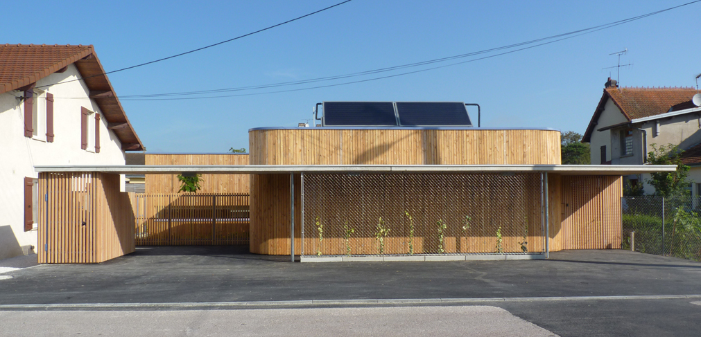 In the West, on the playground, the bays are wide open to nature and a courtyard is bounded by a set of blinds hicles also sunscreen. A playground with rounded shapes is created in this garden.